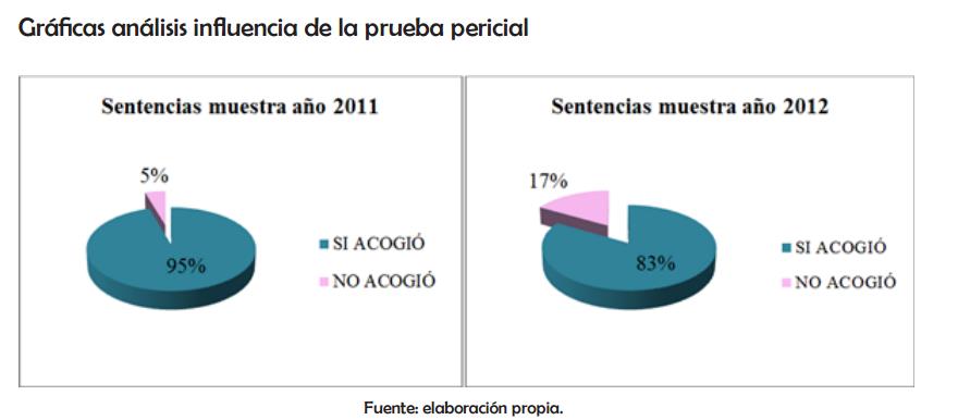 Así las cosas, las gráficas que seguidamente se adjuntan, ilustran los resultados hallados con el análisis previamente efectuado y de ellas se logra desprender que en un porcentaje mayoritario, la prueba pericial es determinante para la decisión final por parte del juez, en aquellos eventos sometidos a su conocimiento y que involucran como se ha manifestado en este escrito, tópicos u otras temáticas totalmente ajenas a su formación y capacitación en la ciencia jurídica.
