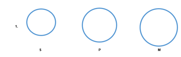 Cuando la primera premisa dice Todo M es P, podría dibujarse como:
