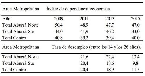 Tabla 1. Índice de dependencia económica y de desempleo en los jóvenes.