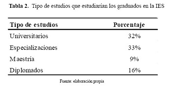 De los graduados que volverían, principalmente lo harían para realizar estudios universitarios, seguido de especializaciones y en menor proporción a realizar estudios de maestría, como se muestra en la tabla 2.